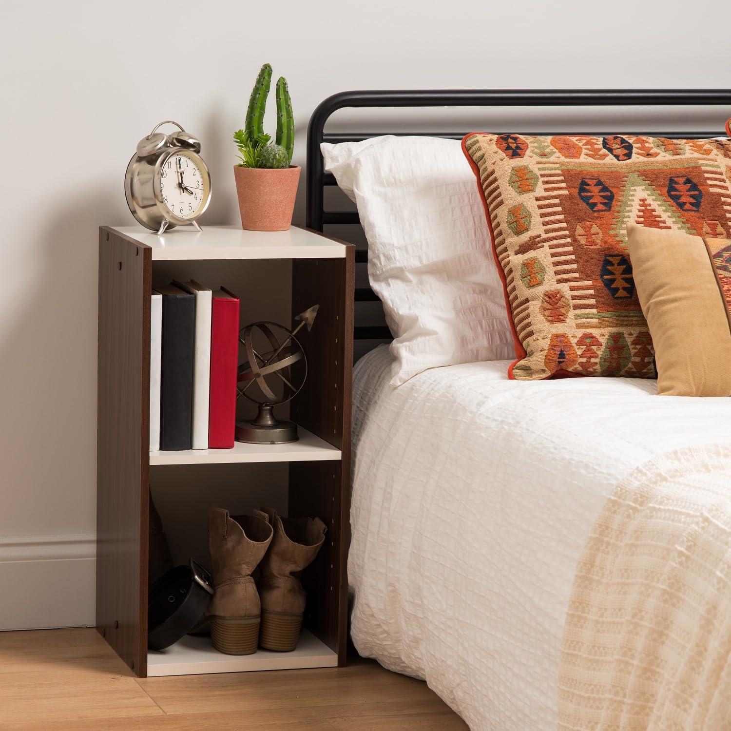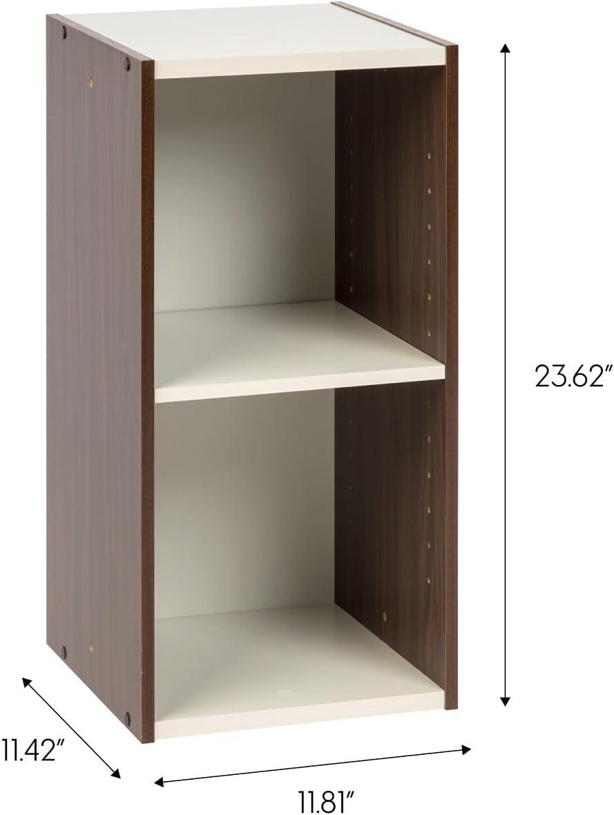 IRIS USA, Inc. 2-Tier Cubby Storage Bookshelf with Adjustable Shelves, 12″ Width Stackable Easy Assembly Space Saving Shelving Unit Bookcase, Walnut Brown/White