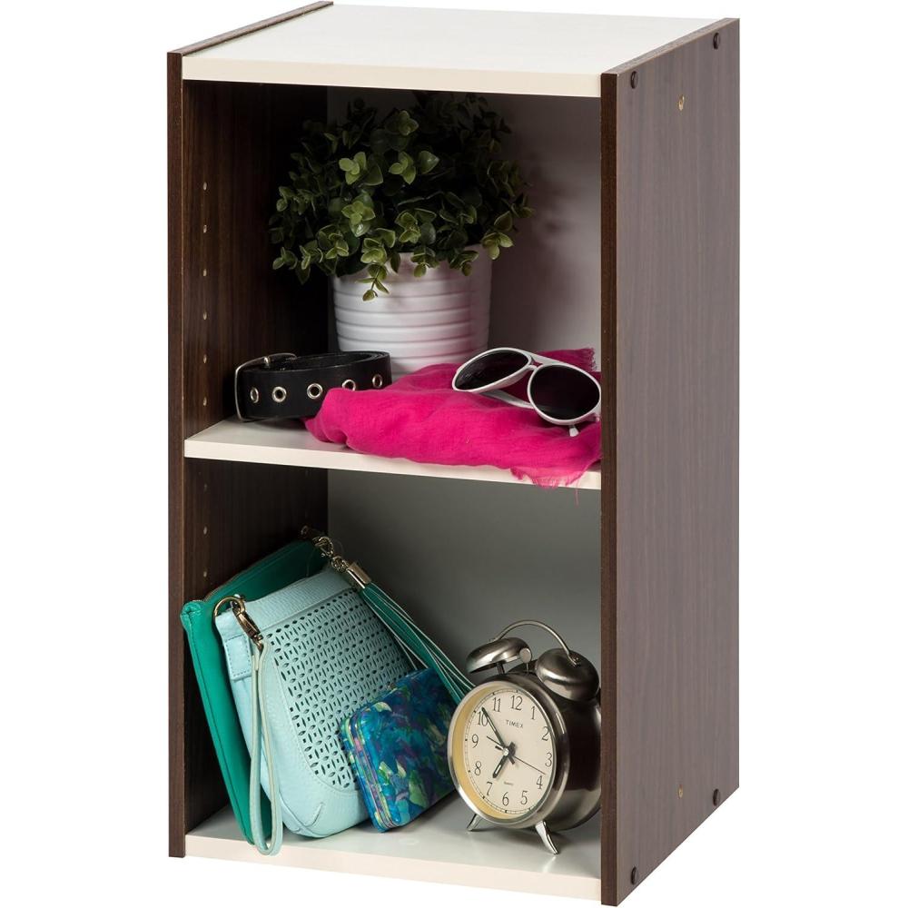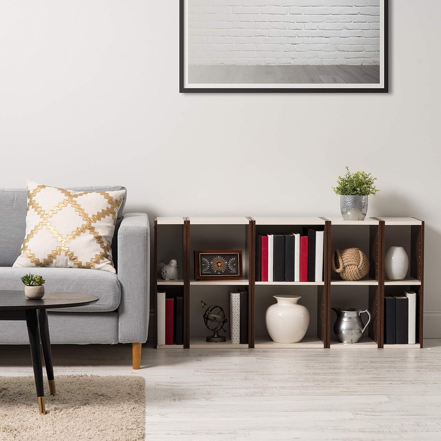 imageIRIS USA Inc 2Tier Cubby Storage Bookshelf with Adjustable Shelves 12quot Width Stackable Easy Assembly Space Saving Shelving Unit Bookcase Walnut BrownWhite