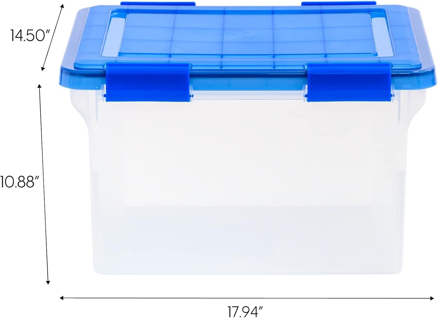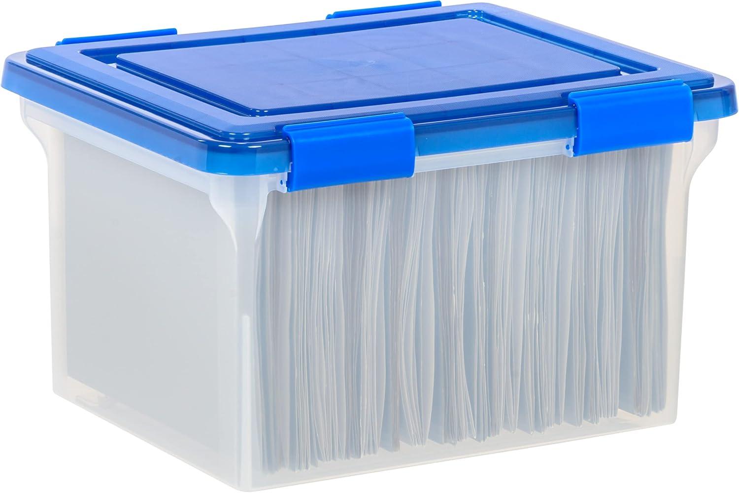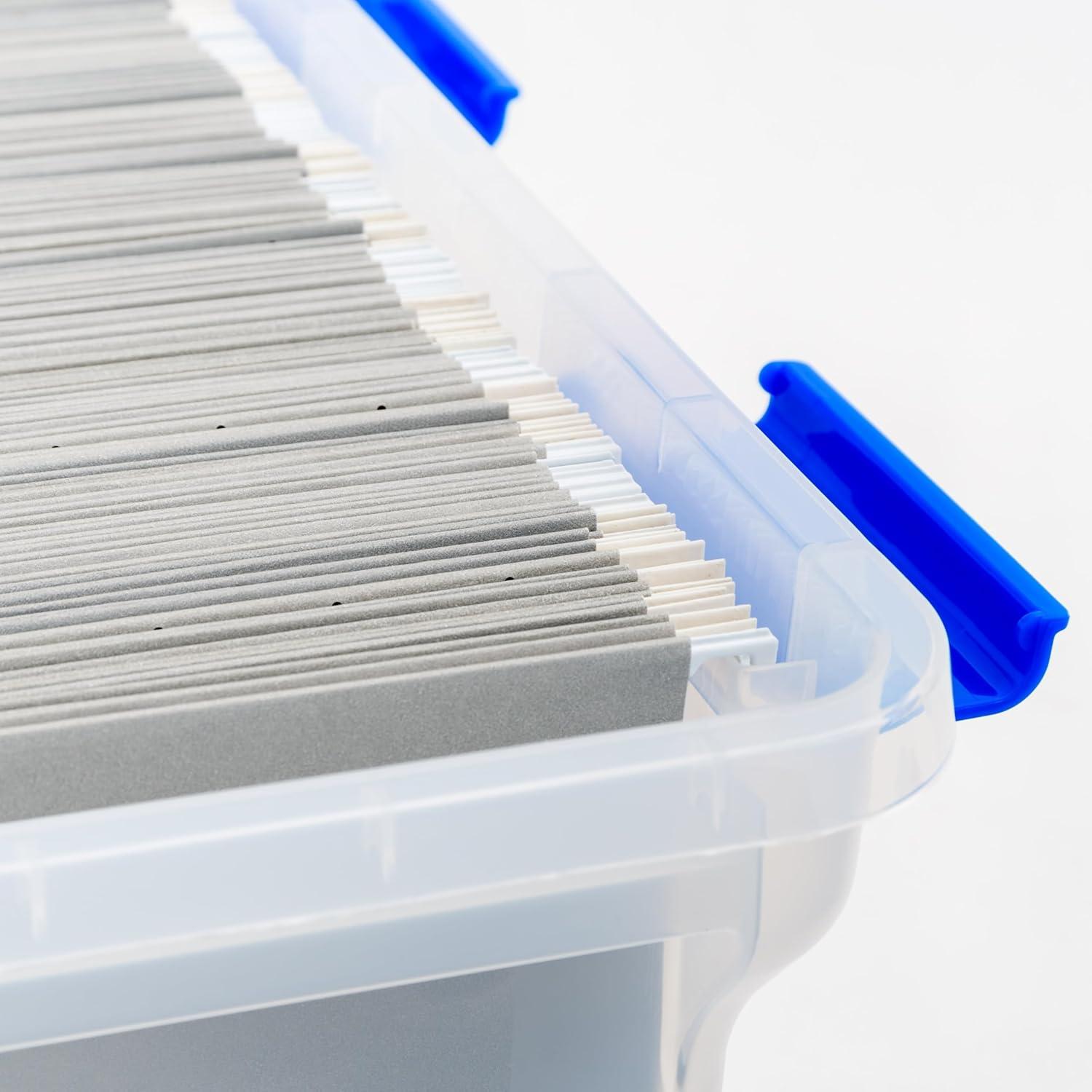Reinforced lid design allows for easy stacking, and four heavy-duty buckles keeps IRIS file box lid secure
