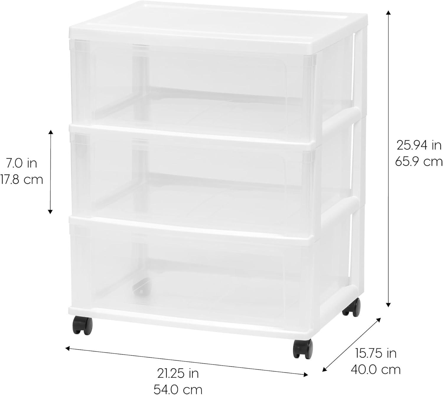 Tackle clutter and disorganization with the IRIS USA plastic wide drawer chest! This portable storage solution allows you to quickly access contents with the easy-pull drawers, and the built-in drawer-stops prevent the drawers from falling out when opened. Featuring removable caster wheels, you can use this drawer cart as an easy way to transport many things between rooms or create a more permanent, stationary storage solution for your space; the choice is yours! These drawers are perfect for everything, from crafts and hobby supplies and more. Let's make life a little easier.
