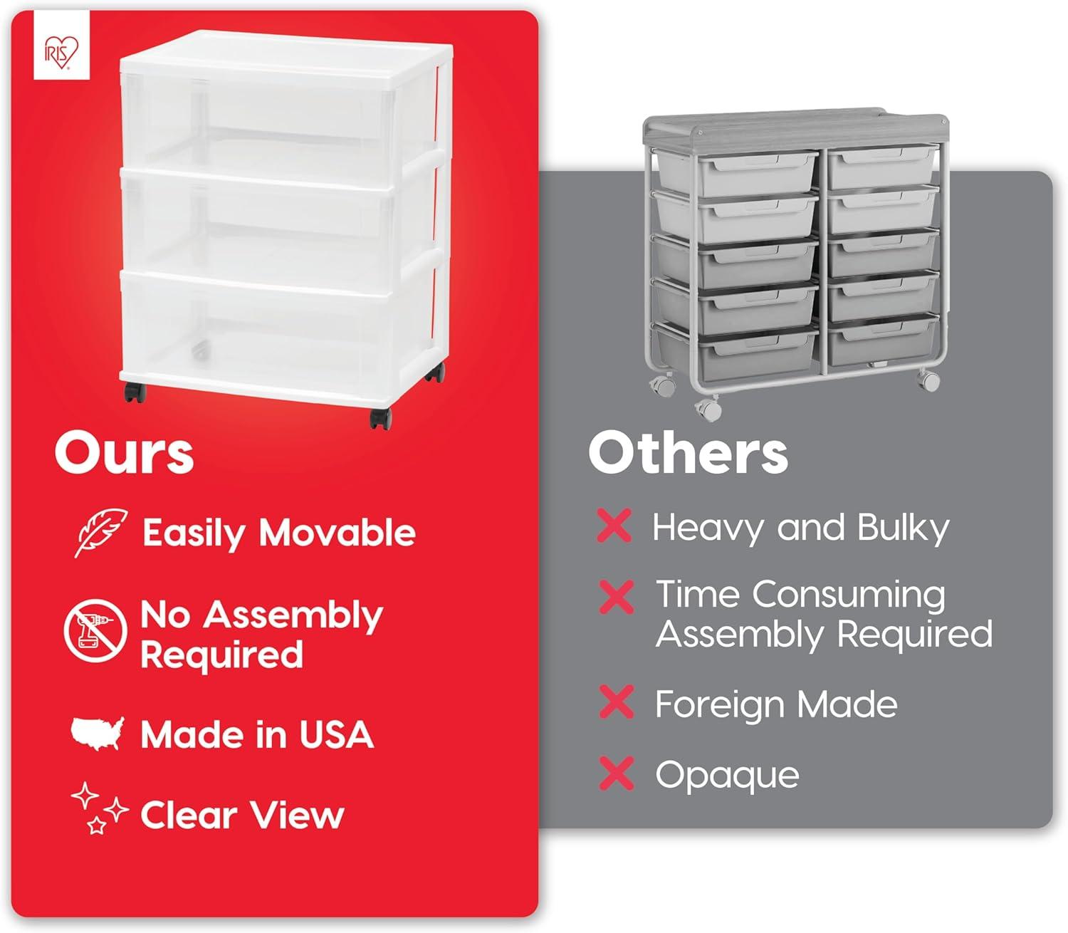 MADE IN USA with global materials: This IRIS USA plastic storage drawer is perfect for organizing any room—dorm, office, or workspace. Spacious enough for supplies, and more, it helps keep your space neat and clutter-free.