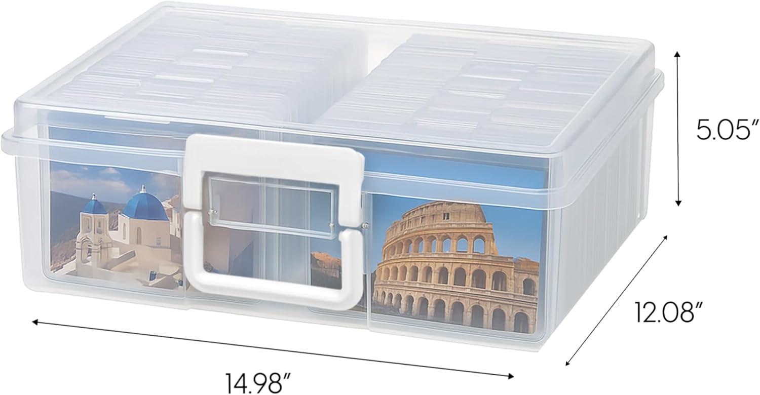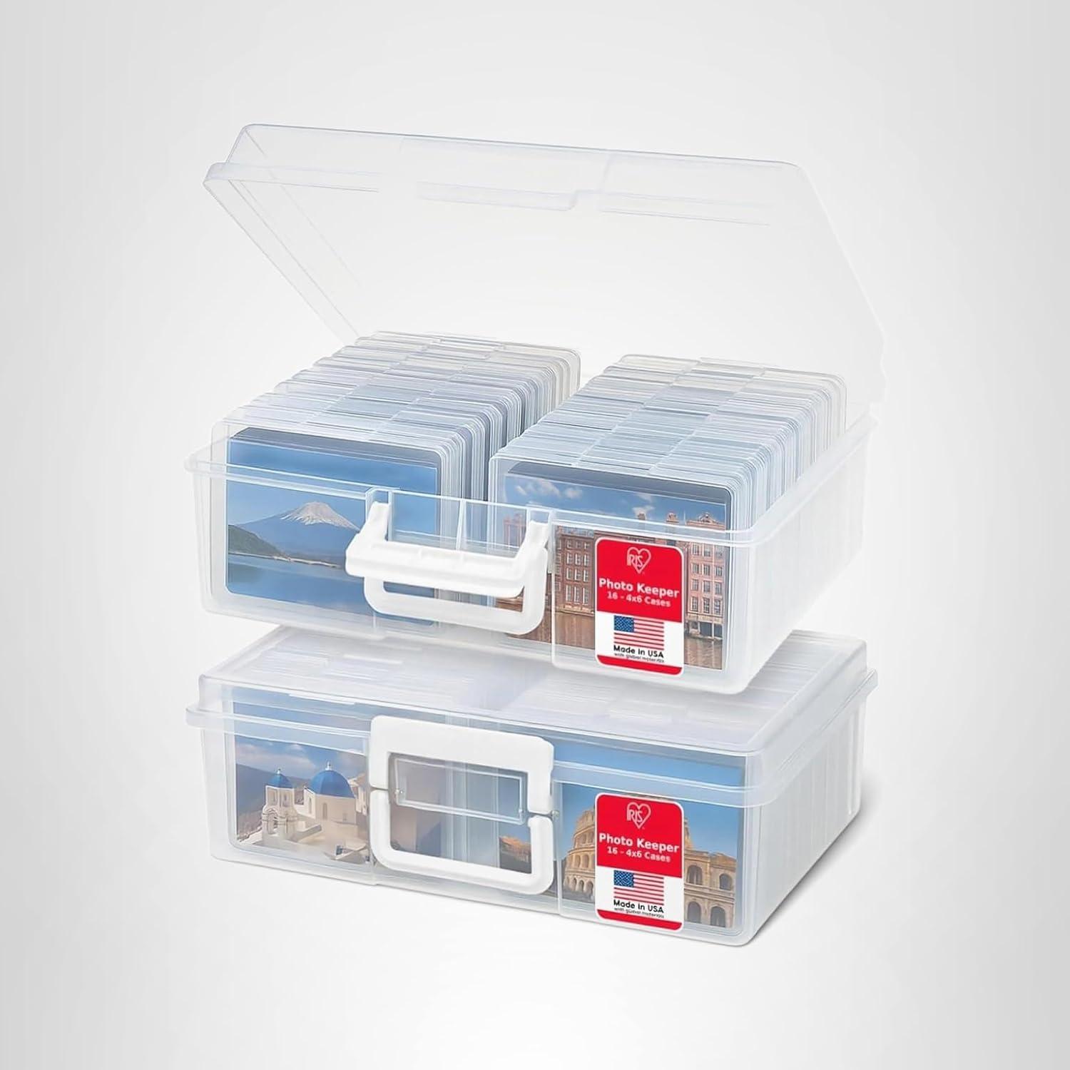 Organize, protect, and simplify your storage with this all-in-one WeatherPro IRIS USA photo and craft keeper, featuring multiple removable inner cases housed in a discreet, durable main container—perfect for storing photographs, scrapbooking supplies, craft embellishments, stationery, index cards, flashcards, seed packets, game pieces, stickers, and more; each inner case includes snap-tight closures to keep contents secure and rounded corners to protect delicate items, while the stackable outer container ensures easy portability, Weather resistant protection, and space-saving storage at home, or on the go; ideal for photographers, teachers, crafters, scrapbookers, and organizers of all kinds, this photo organizer and storage solution is made with high-quality, acid-free, BPA-free materials to preserve your items long-term without damage or fading; whether you're sorting keepsakes, organizing craft supplies, or managing office materials, this clear photo box storage system provides the flexibility and protection you need to stay organized with ease.