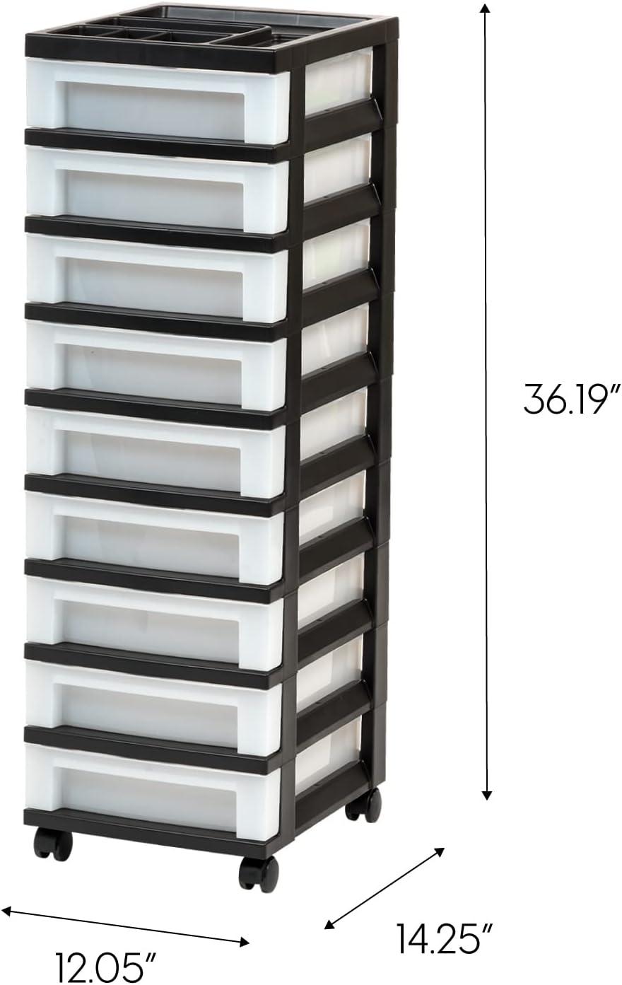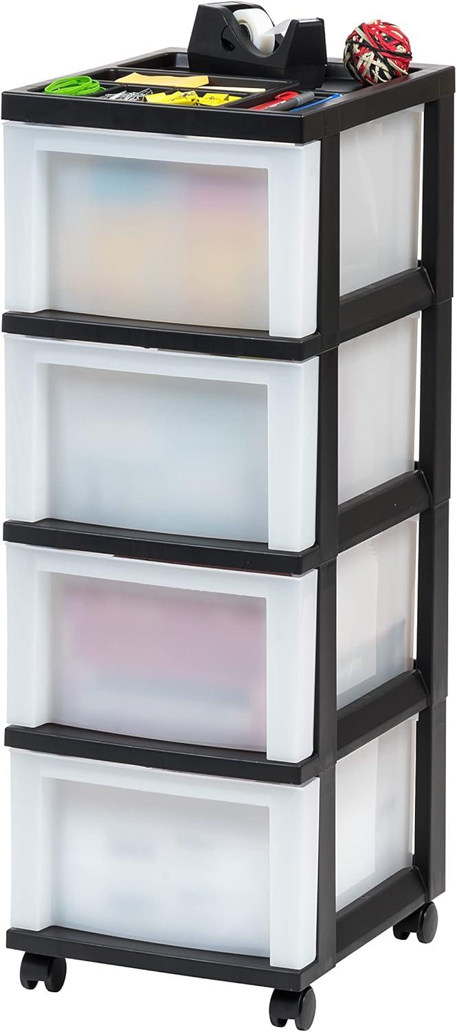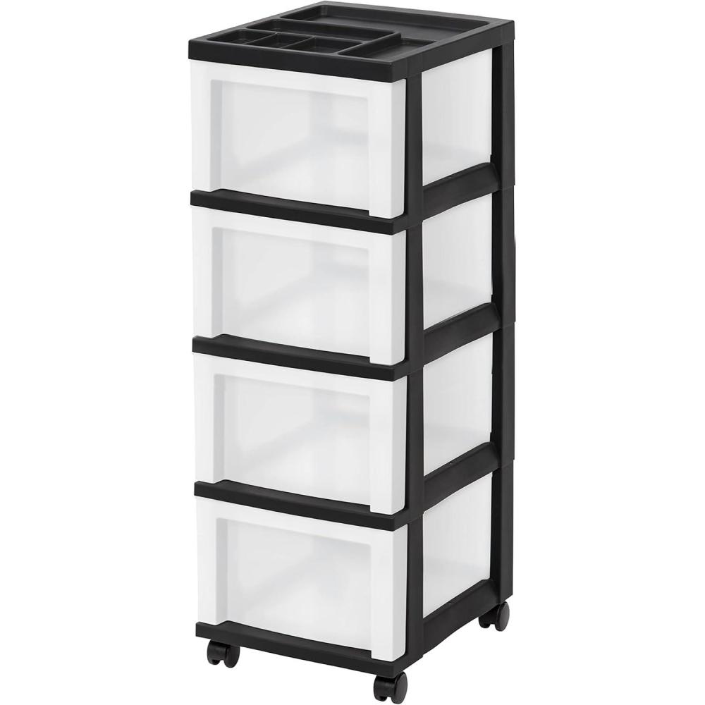 Medium 4-Drawer Cart with Organizer Top, Black/Pearl(Black/Pearl)