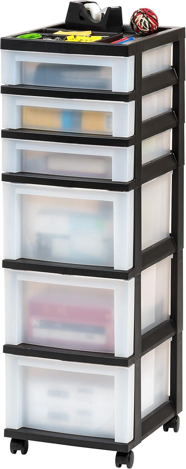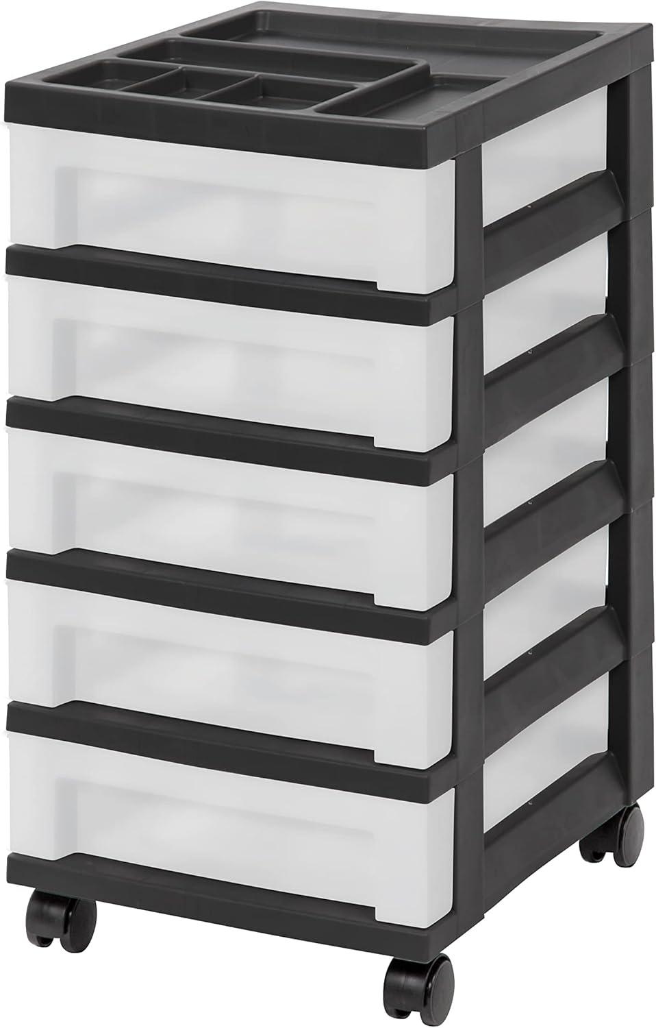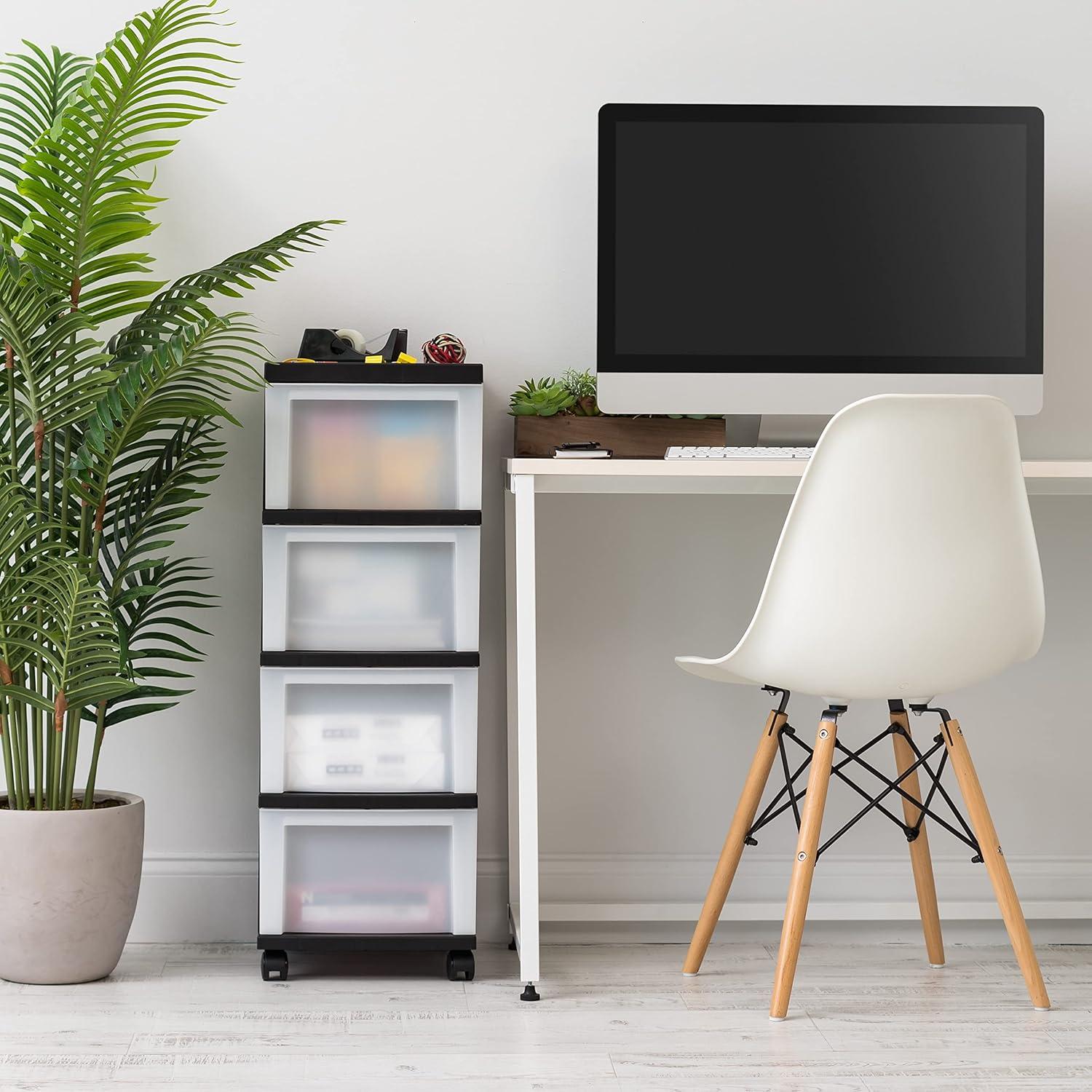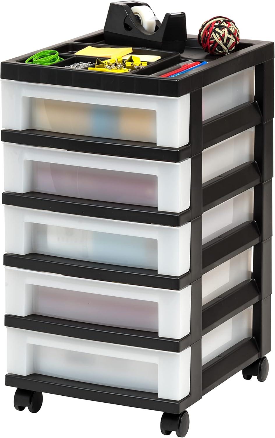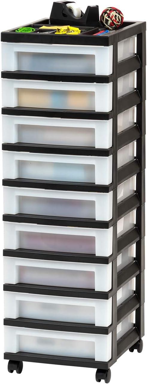 IRIS USA Craft Plastic Organizers and Storage, Rolling Storage Cart for Classroom Supplies, Storage Organizer for Art Supplies, Drawer Top Organizer for Small Parts, 4 Drawers, Gray/Clear