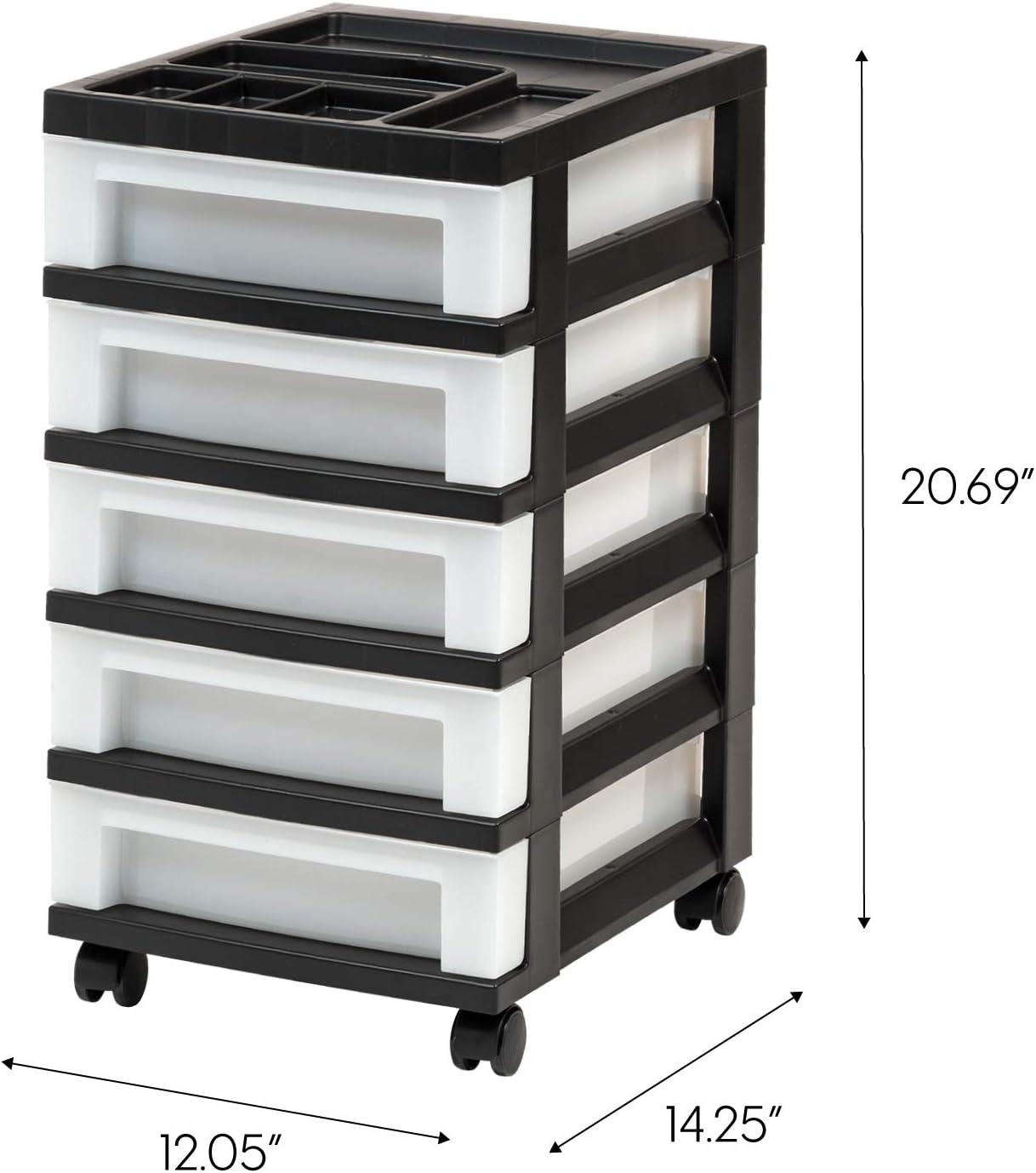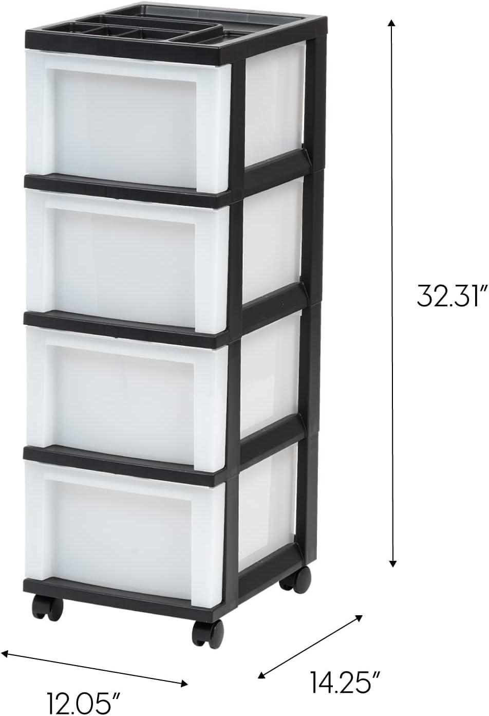 Medium 4-Drawer Cart with Organizer Top, Black/Pearl(White/Pearl)